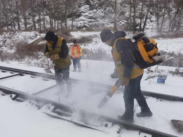 人民網(wǎng)哈爾濱11月6日電 (尚城)11月6日,黑龍江省迎來暴雪、雨雪冰凍、大風天氣,此次過程影響范圍廣、降雪量大,局地降水量可能接近或突破歷史同期極值。中國鐵路哈爾濱局集團有限公司第一時間對受降雪影響主要鐵路區(qū)段啟動預(yù)警,調(diào)集大功率風力除雪機、重型軌道車、除雪車輛、熱滑除冰列車等設(shè)備參與除雪工作。為確保旅客列車和人民群眾出行絕對安全,哈鐵有序開展行車調(diào)度、清冰除雪、設(shè)備巡檢、旅客疏導(dǎo)、安全防護等應(yīng)急處置工作,根據(jù)雪情科學(xué)調(diào)整運輸方案,盡最大努力減少惡劣天氣對運輸秩序的影響。