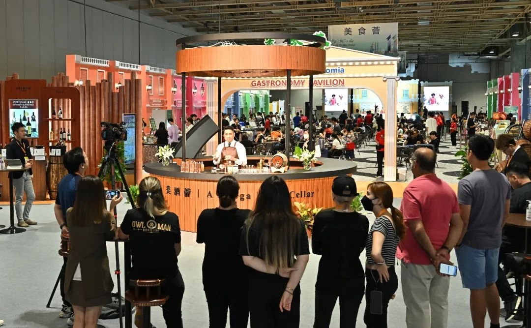同場(chǎng)設(shè)“美食薈”,18家本地美食展商參展,本屆亦首設(shè)“美酒薈”,來自內(nèi)地、香港和澳門共16間酒商參展,銷售美酒及相關(guān)產(chǎn)品。“美酒薈”現(xiàn)場(chǎng)設(shè)有葡萄酒釀製工藝介紹入門證書課程、品酒工作坊、澳門啤酒製作工藝及知識(shí)講解會(huì)和澳門啤酒競(jìng)飲大賽等活動(dòng)讓公眾參與,反應(yīng)踴躍。澳門六家綜合度假休閒企業(yè)的調(diào)酒師帶來創(chuàng)意調(diào)酒表演,氣氛熱鬧。