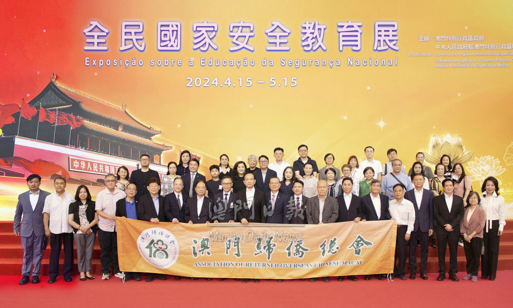 【澳門日?qǐng)?bào)消息】澳門歸僑總會(huì)會(huì)長(zhǎng)劉雅煌、理事長(zhǎng)陳曉平、監(jiān)事長(zhǎng)王彬成組織六十名理監(jiān)事一行,昨日到綜藝館參觀“全民國(guó)家安全教育展”,藉此加深了解總體國(guó)家安全,堅(jiān)守和弘揚(yáng)愛(ài)國(guó)愛(ài)澳的優(yōu)良傳統(tǒng)。
