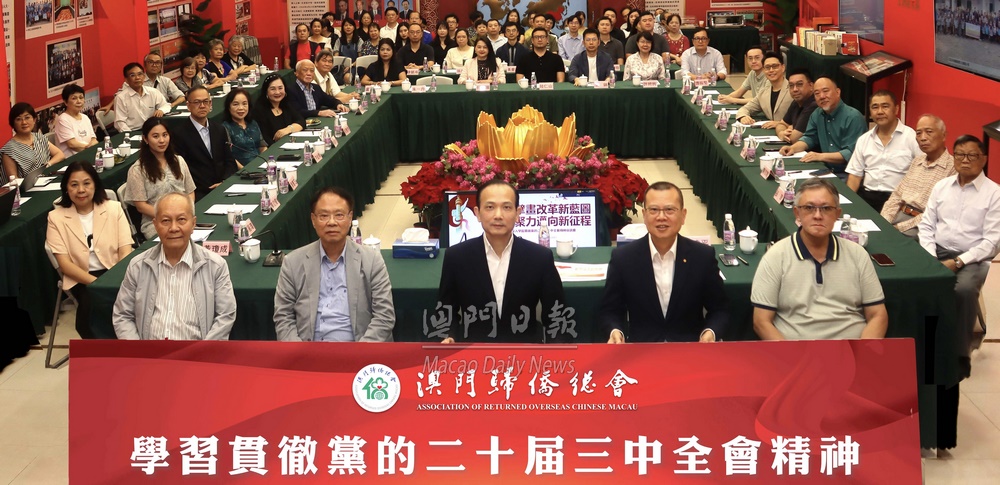 【澳門日報(bào)消息】澳門歸僑總會(huì)於7月31日下午6時(shí)在會(huì)址舉行“學(xué)習(xí)貫徹黨的二十屆三中全會(huì)精神座談會(huì)”。